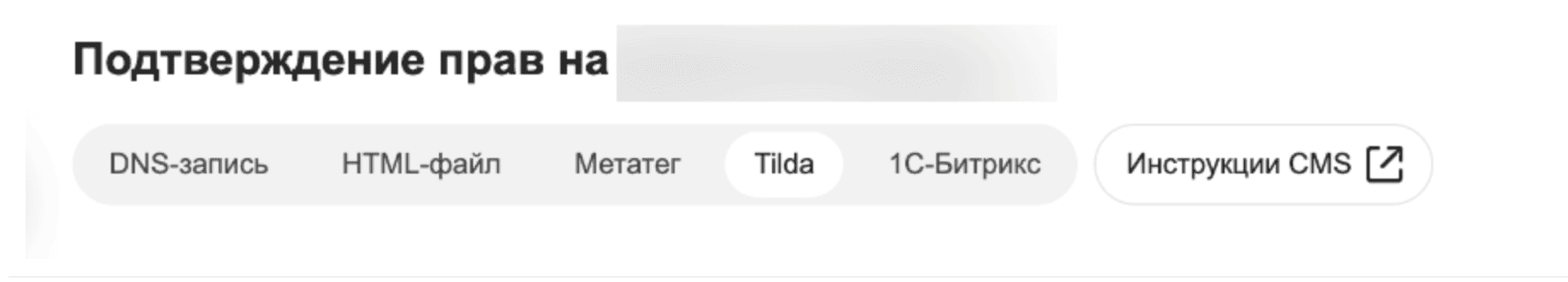 Система предложит несколько способов подтверждения права собственности на сайт: