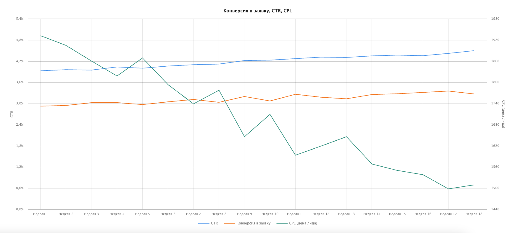 Конверсия из рекламы в заявку на консультацию — + 11,4%.